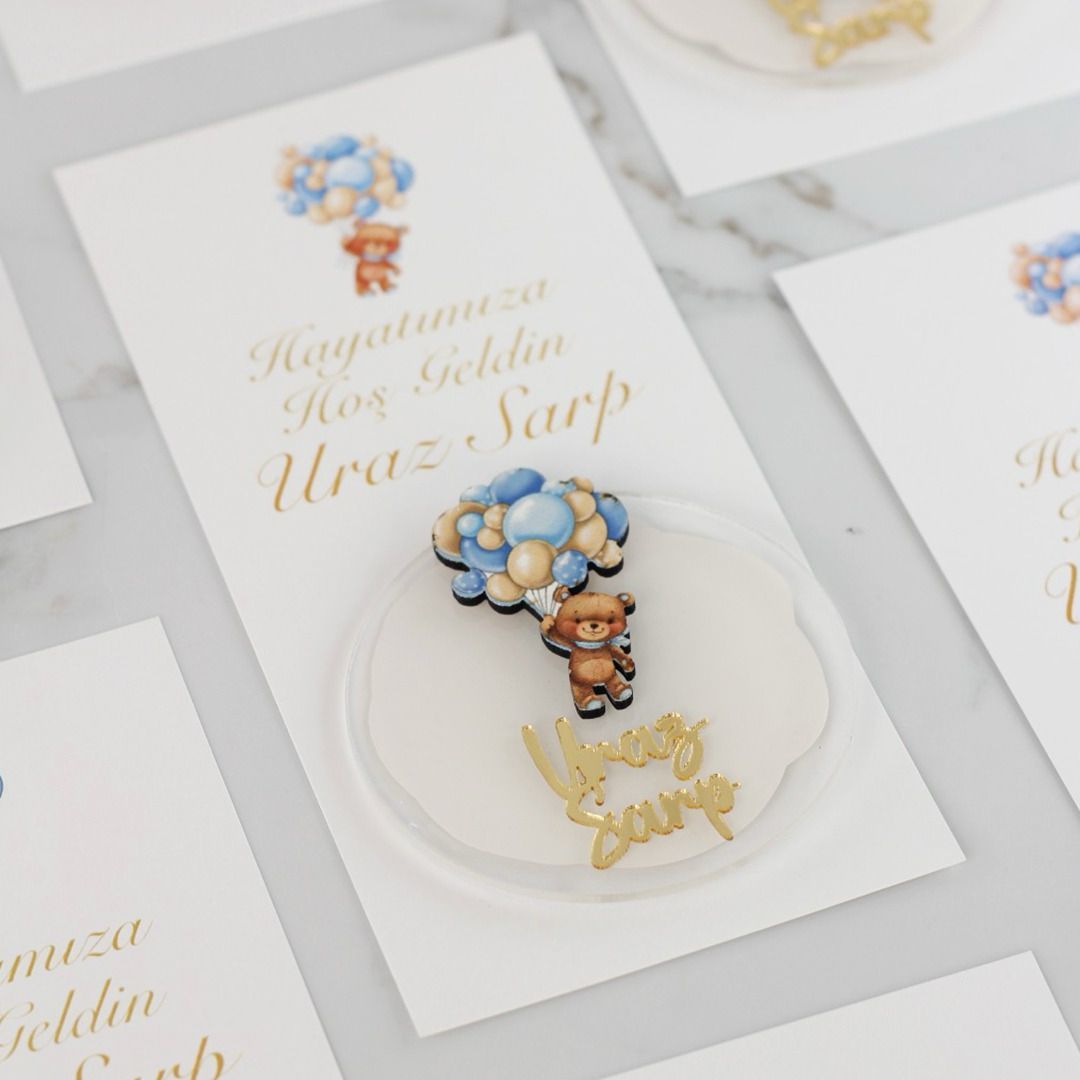 Ayıcık Temalı Erkek Bebek Kartlı Pleksi Magnet