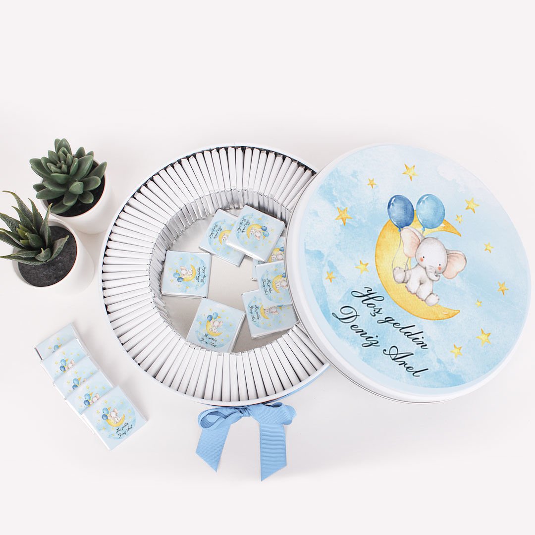 Fil Temalı Baskılı Metal Kutuda Erkek Bebek Çikolatası