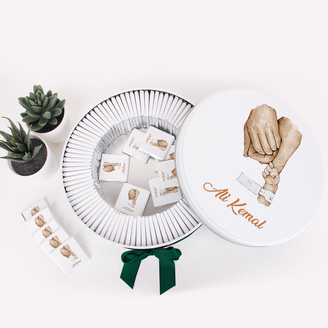 Kardeş Temalı Baskılı Metal Kutuda Erkek Bebek Çikolatası