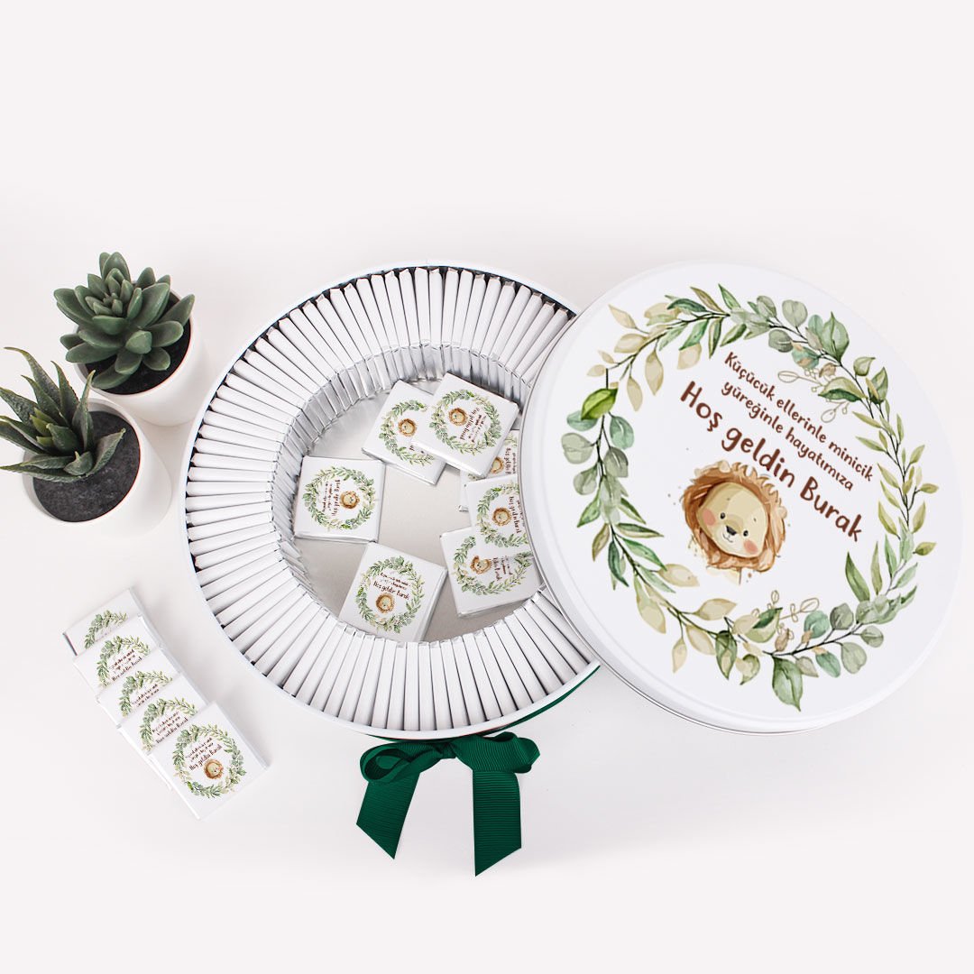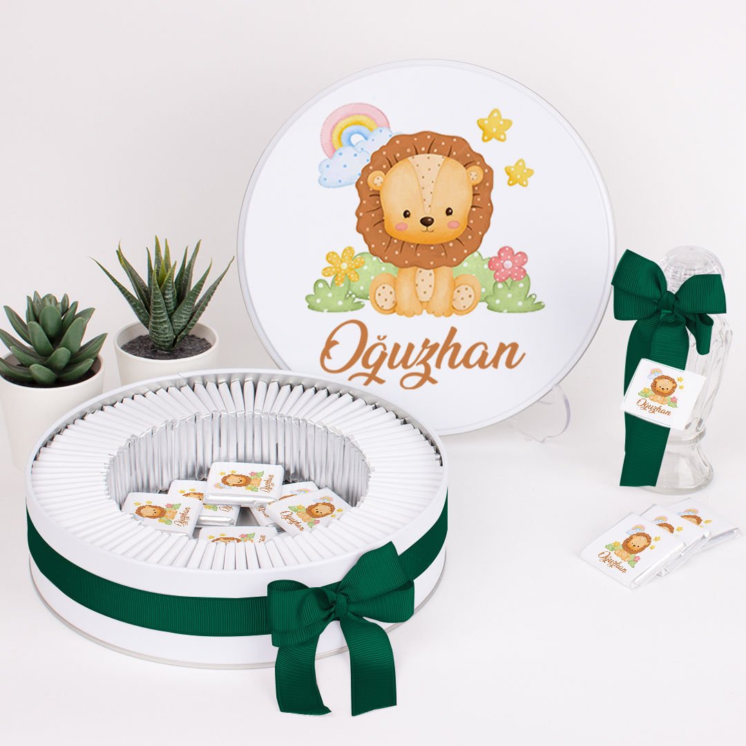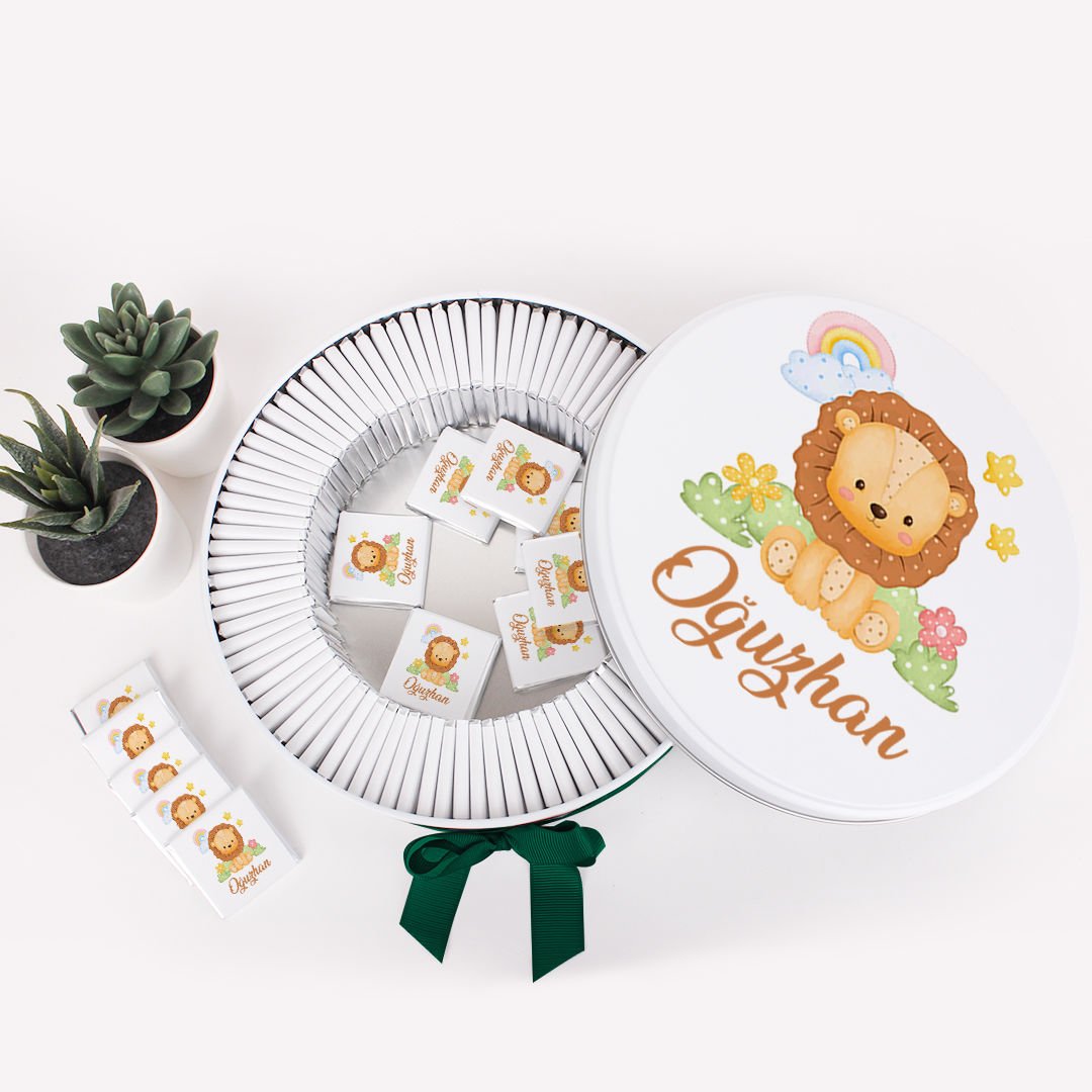 Aslan Temalı Baskılı Metal Kutuda Erkek Bebek Çikolatası