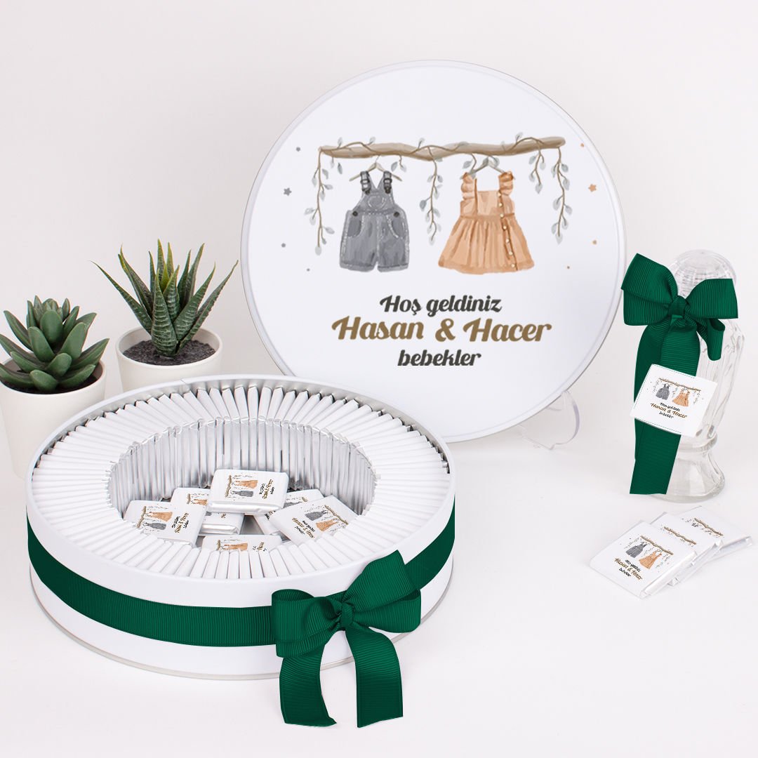 İkizler Temalı Baskılı Metal Kutuda Erkek Bebek Çikolatası