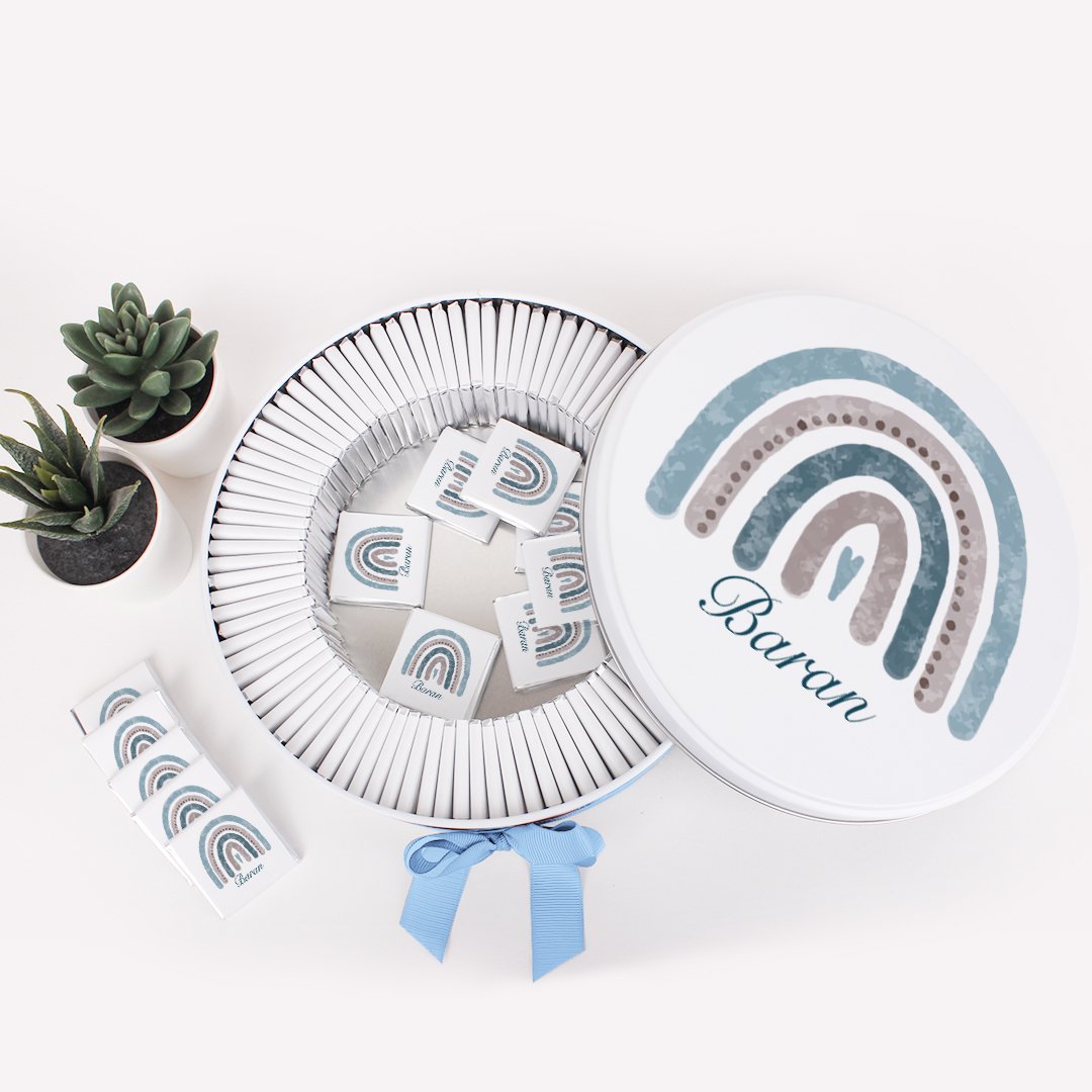 Gökkuşağı Temalı Baskılı Metal Kutuda Erkek Bebek Çikolatası