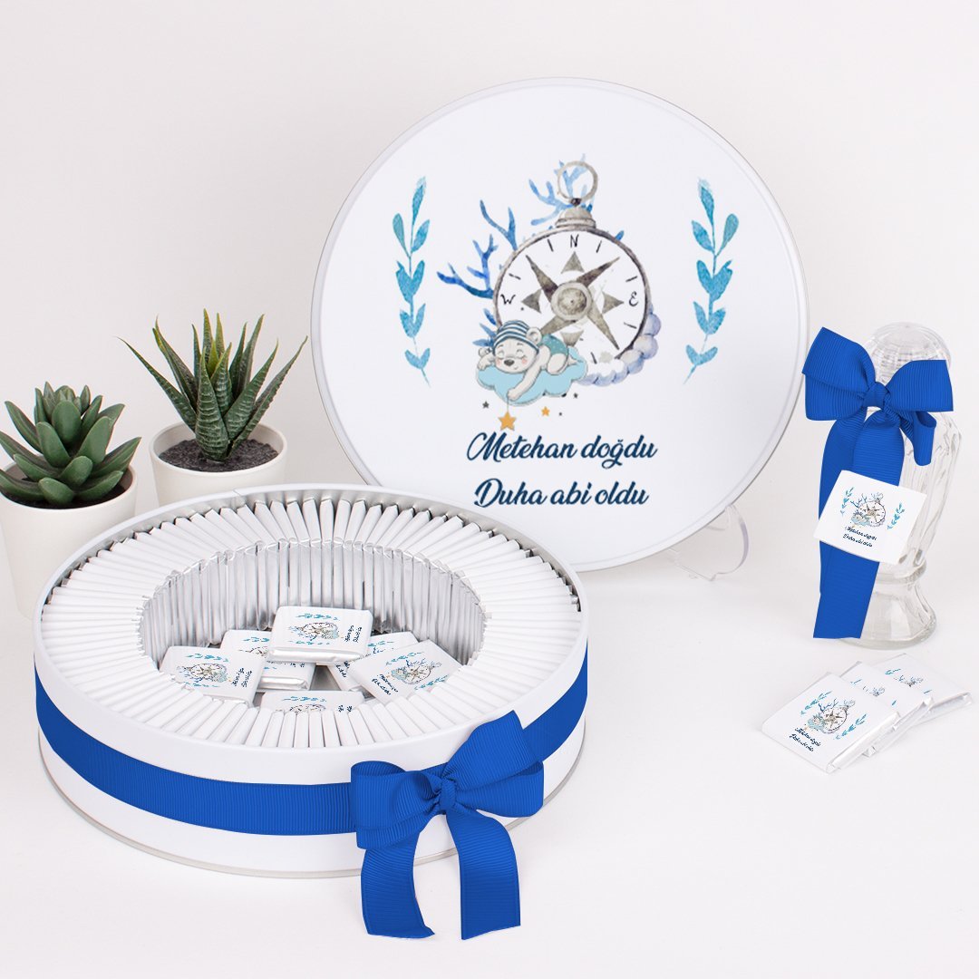 Denizci Temalı Baskılı Metal Kutuda Erkek Bebek Çikolatası