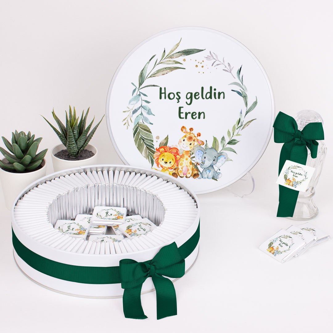 Hayvan Temalı Baskılı Metal Kutuda Erkek Bebek Çikolatası