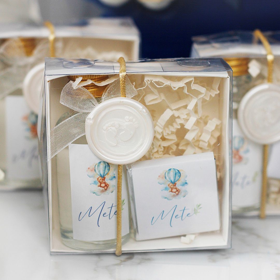 Ayıcık Temalı Kutuda Mini Cam Kolonya ve Ayıcıklı Mum
